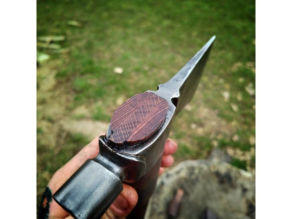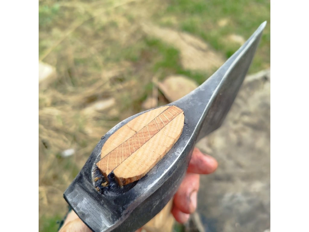 Ručně kovaný tomahawk představuje poctivý nástroj pro práci i pobyt v přírodě. Hlava sekery je ukována z pružinové oceli 14260, která je známá svou vysokou houževnatostí a odolností proti prasknutí. Ostří o délce 75 mm je precizně zakaleno na tvrdost 57 Hrc, což zajišťuje skvělou řezivost a dlouhou životnost ostří i při náročném používání.
