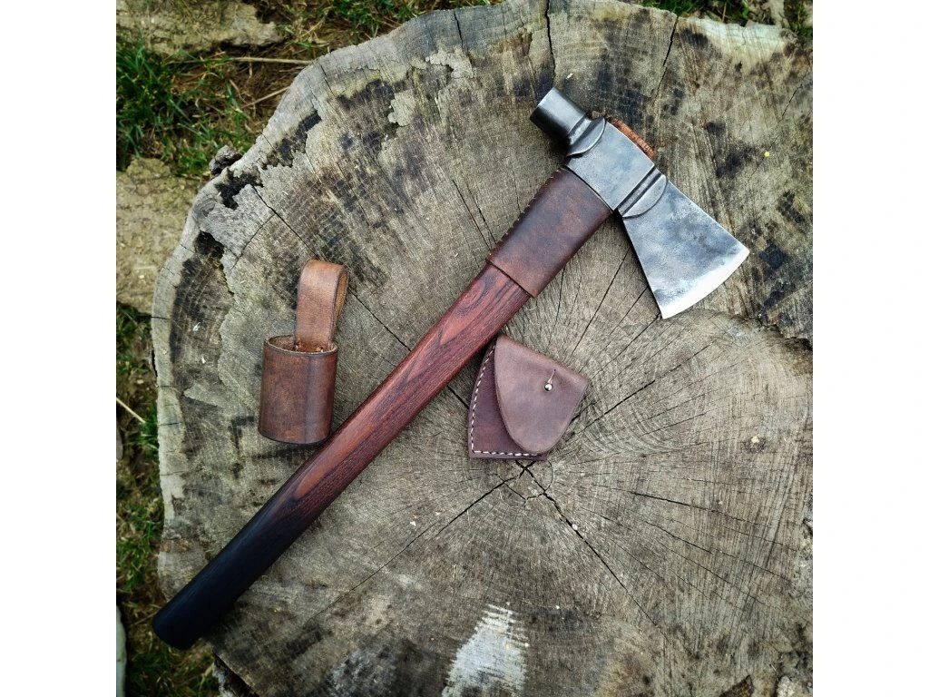 Sekera je osazena topůrkem z jasanového dřeva o celkové délce 52 cm. Jasan je pro tento účel ideální díky své pružnosti a schopnosti pohlcovat nárazy, což šetří vaše ruce při sekání. Tento tomahawk v sobě spojuje tradiční kovářské postupy a kvalitní materiály, které z něj dělají spolehlivého parťáka do nepohody.